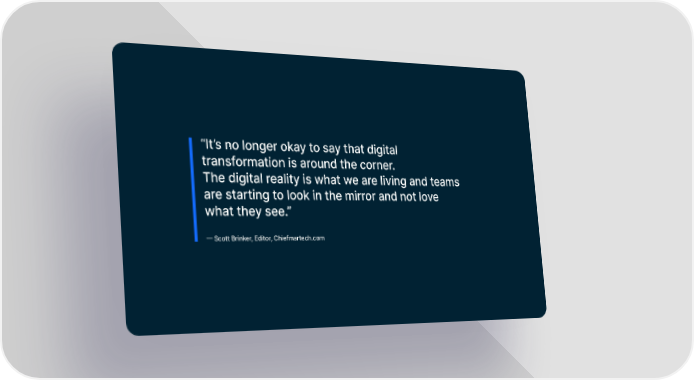βItβs no longer okay to say that digital transformation is around the corner. The digital reality is what we are living and teams are starting to look in the mirror and not love what they see.β β Scott Brinker, Editor, Chiefmartech.com